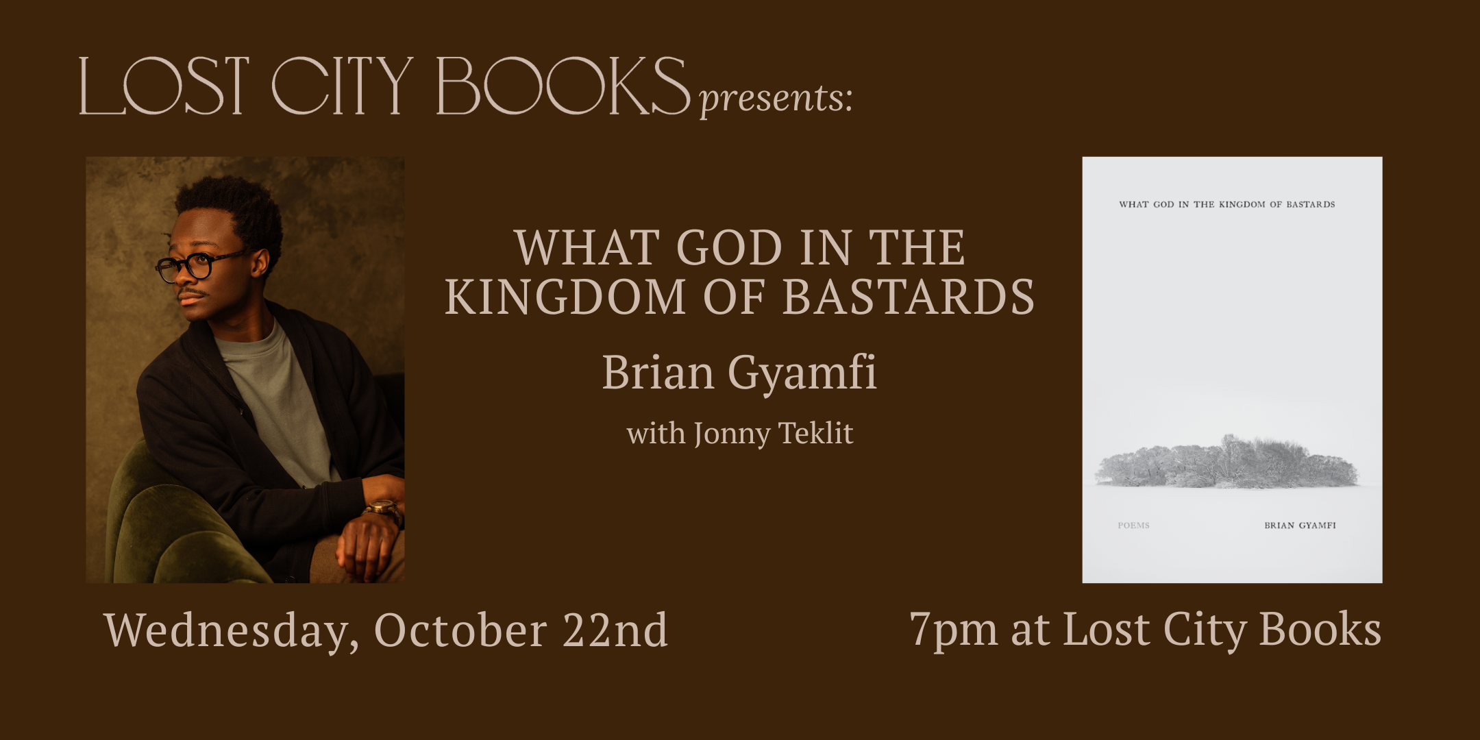 What God in the Kingdom of Bastards is a poetic exploration of grief, memory, Blackness, and the haunting legacy of familial trauma by way of colonialism, told through the lens of two brothers: Lot, the elder, who is flesh and alive, and Frank, the younger, a ghost navigating his post-suicide existence. Their relationship anchors the collection, weaving themes of love, loss, and the arduous reconciliation between the living and the dead. Combining vivid imagery with fragmented, conversational tones of prayers, laments, and whispered confessions that are surreal and lyrical, Gyamfi delves into the ways trauma--both personal and systemic--permeates family, faith, and identity.