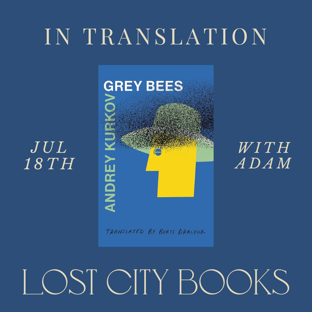 In Translation will be meeting on Thursday, July 18th, at 7 pm. We will be reading Grey Bees by Andrey Kurkov, translated by Boris Dralyuk.
