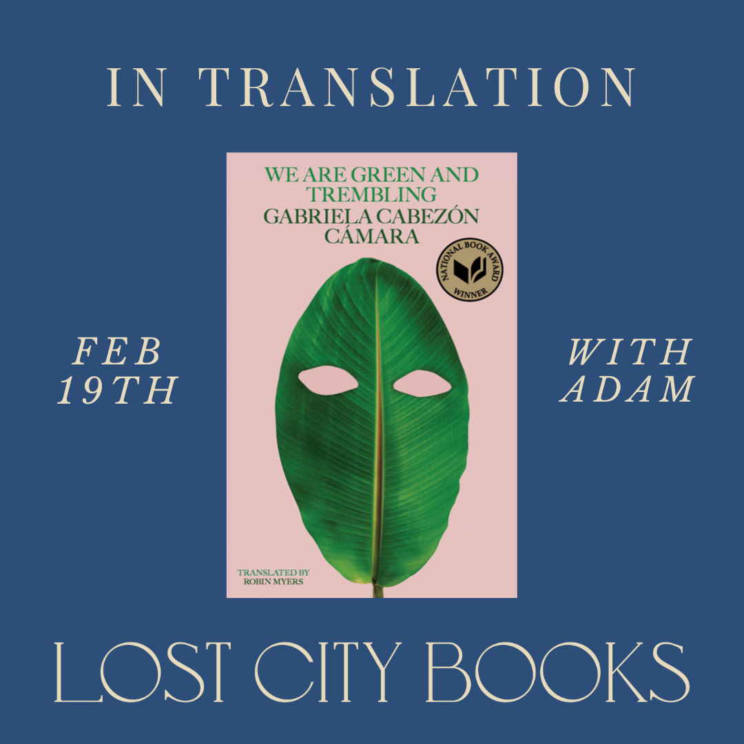 In Translation will meet on Thursday, February 19th, at 7pm. We will be reading WE ARE GREEN AND TREMBLING by Gabriela Cabezón Cámara, and translated by Robin Myers. You can purchase the book by clicking here.