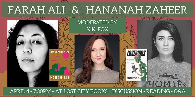 Welcome Farah Ali and Hananah Zaheer in discussing their books, People Want to Live and Lovebirds, moderated by K. K. Fox!