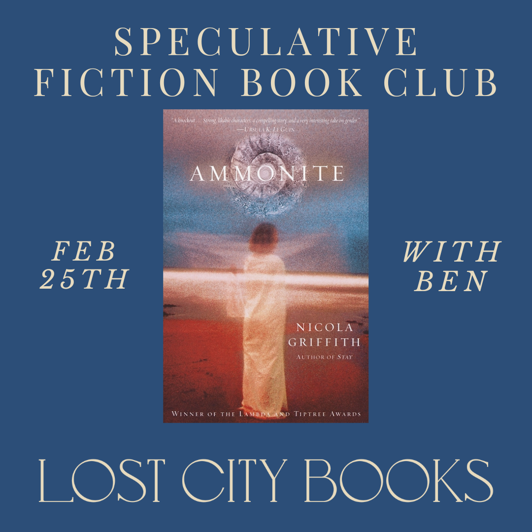 The Speculative Fiction Book Club will meet on Wednesday, February 25th at 7pm. We will be reading AMMONITE by Nicola Griffith. You can purchase the book by clicking here.